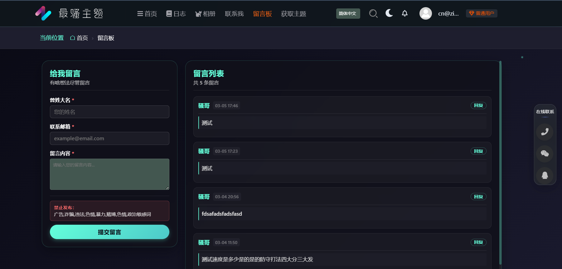 - 2.查看留言:在”留言板 -> 留言列表”查看和管理所有留言