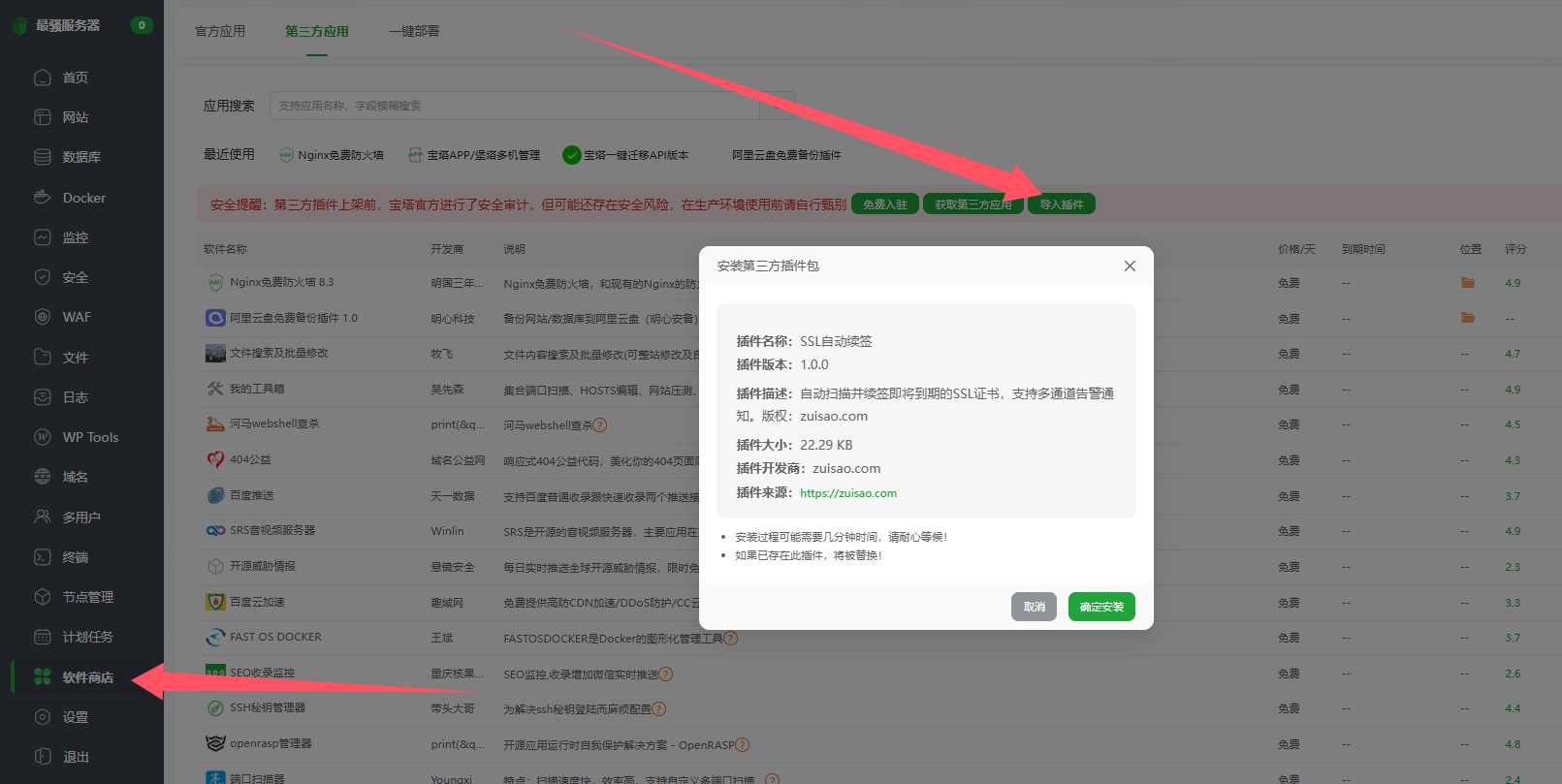 ## 三、插件安装教程(宝塔一键导入)